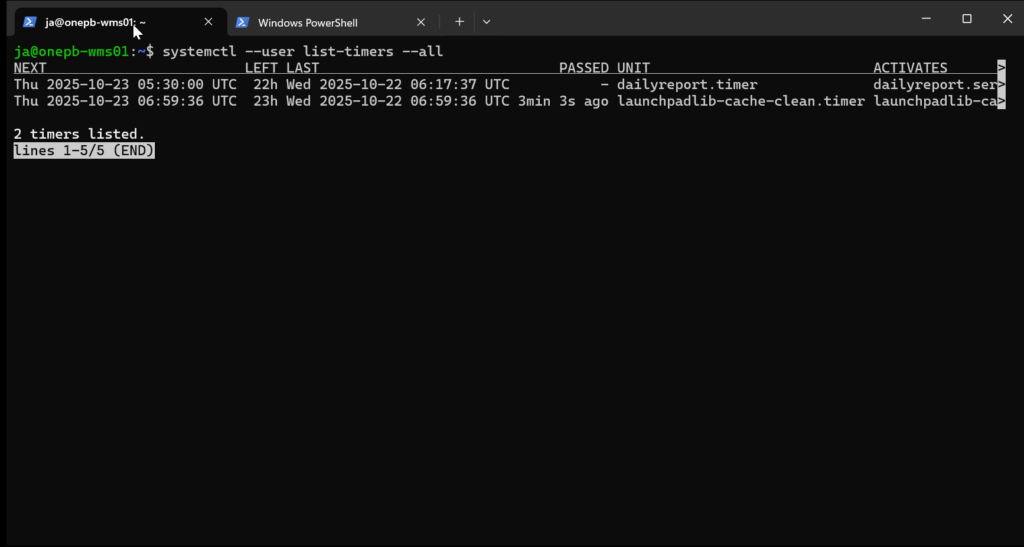 EXPERIENCEsystemctl --user list-timers --allto make sure that the timer is set to run even after a reboot