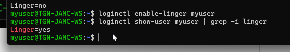 loginctl enable-linger myuser
