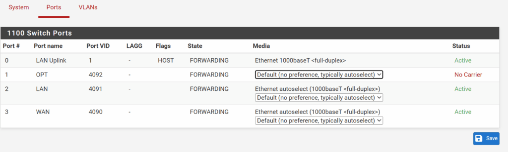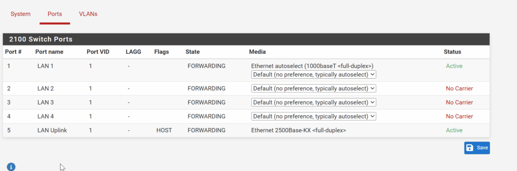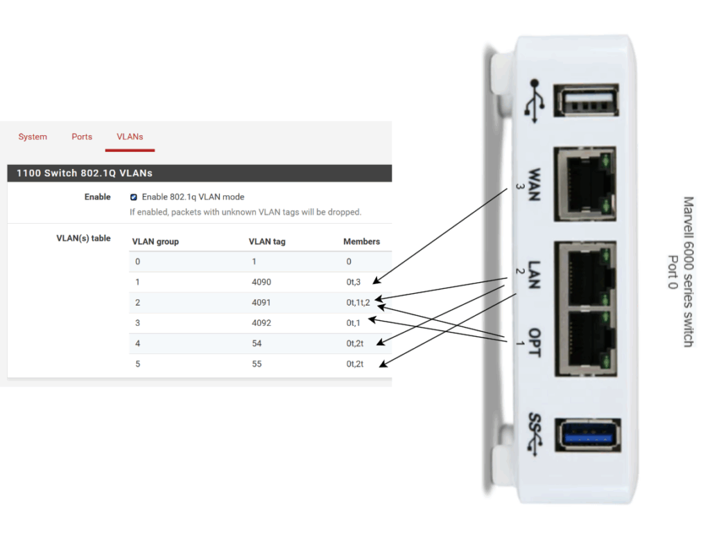 The Netgate 2100 uses the same Marvell Chip but different port assignments