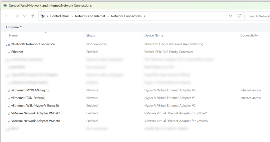 NIC-VLAN99                                     True                  TGN-External           00155D03BE07 {Ok}