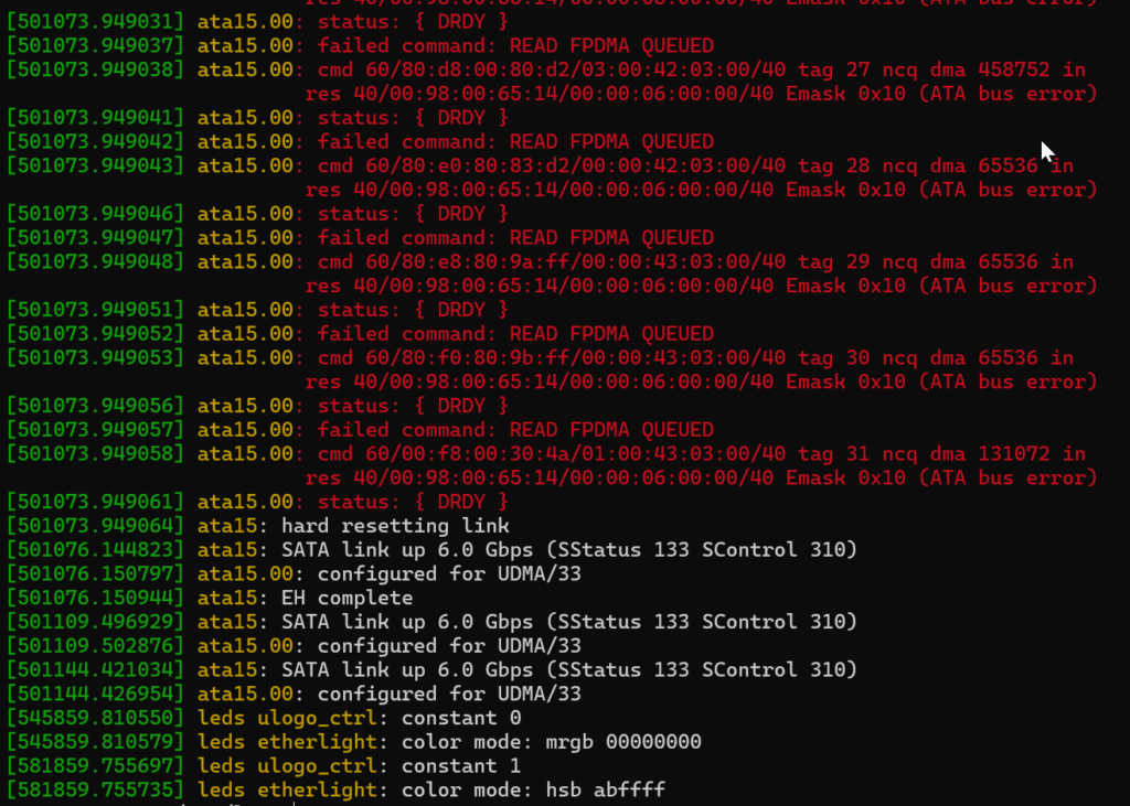 2025-10-04T09:45:51+10:00 MYENVR kernel: ata15: failed to resume link (SControl 0)