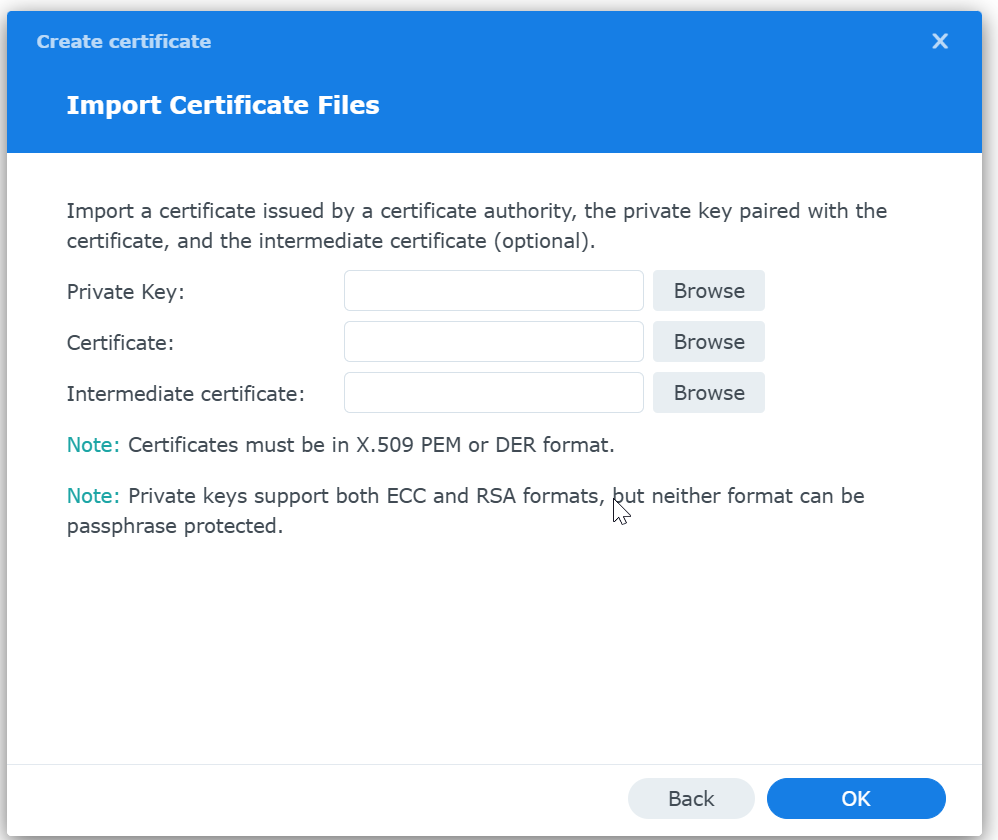 Steps to upload a self-signed Certificate and Private Key To Synology